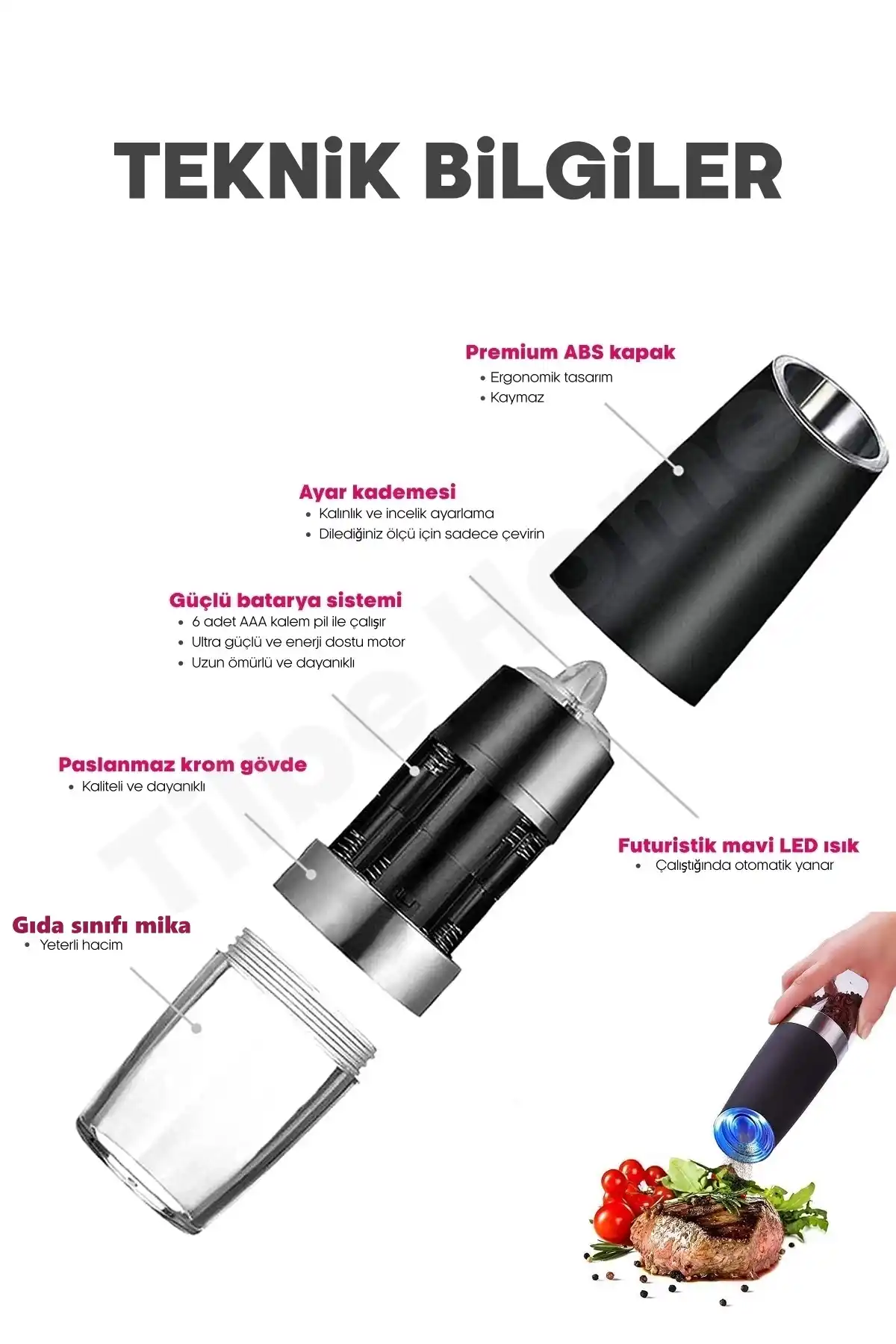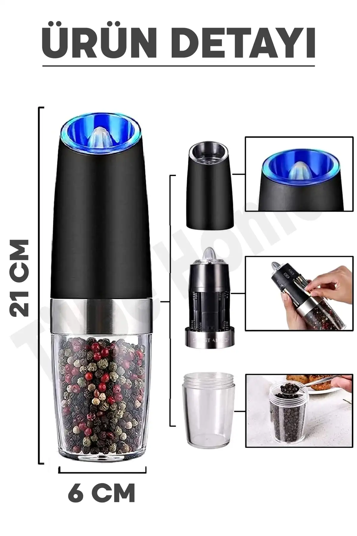 • Paket İçeriği: 2 adet sensörlü tuz & baharat değirmeni