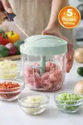 Tilbe Home Doğrulanmış Marka Pratik İpli El Rondosu 5 Çelik Bıçaklı Büyük Boy Sebze Meyve Et Soğan Doğrayıcı Blender Rende Yeşil