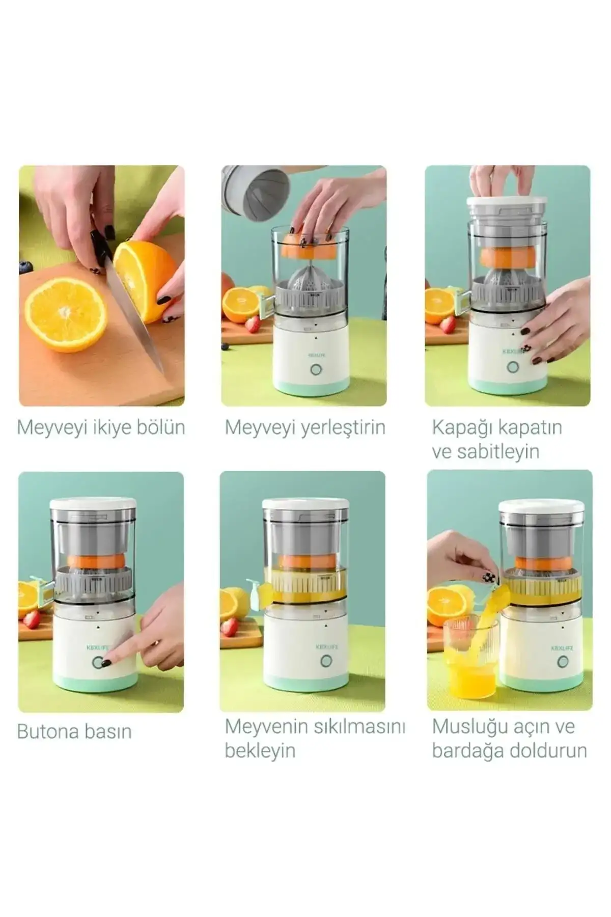 • Tilbe Home Pratik Şarjlı Narenciye Sıkacağı Taşınabilir USB Hazneli Portakal Limon Katı Meyve Sıkma