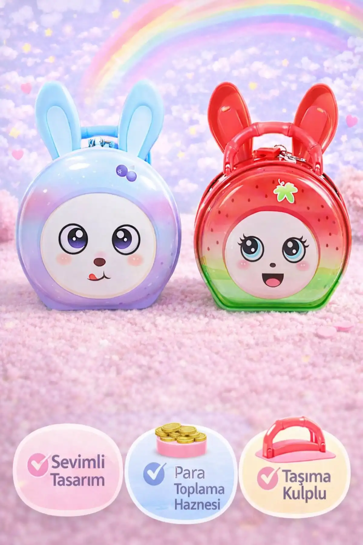 • Sevimli tavşan figürlü metal kilitli kumbara,