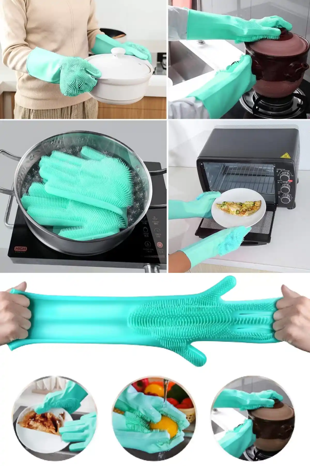 • ✔  ÇOK AMAÇLI KULLANIM: Bulaşık yıkarken, temizlik yaparken fırça veya süngere gerek kalmaz. Sıcak yemekleri taşımak veya fırın yemeklerini çıkarmak için de kullanılabilir.   Yüzey temizliği, meyve ve sebze yıkama, evcil hayvan bakımı gibi birçok alanda kullanılabilir. Son derece elastik ve esnektir. Silikon malzemeden üretilmiştir.