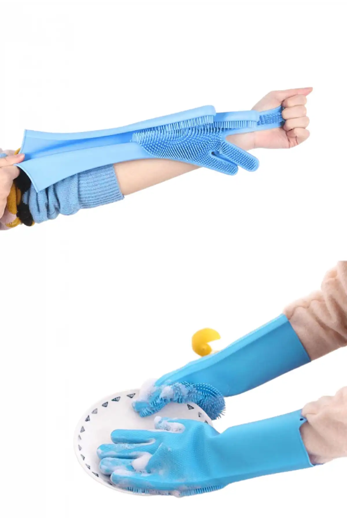 • Tilbe Home Silikon Sihirli Magic Bulaşık Yıkama Eldiveni Dayanıklı Tırtıklı Kaymaz Her El İle Uyumlu Çok Amaçlı Mutfak Banyo Ev Temizlik Eldiveni Eldiveni Tırtıklı Elastik Kaymaz Dayanıklı Araç Yıkama Evcil Hayvan Yıkama Eldiven Seti