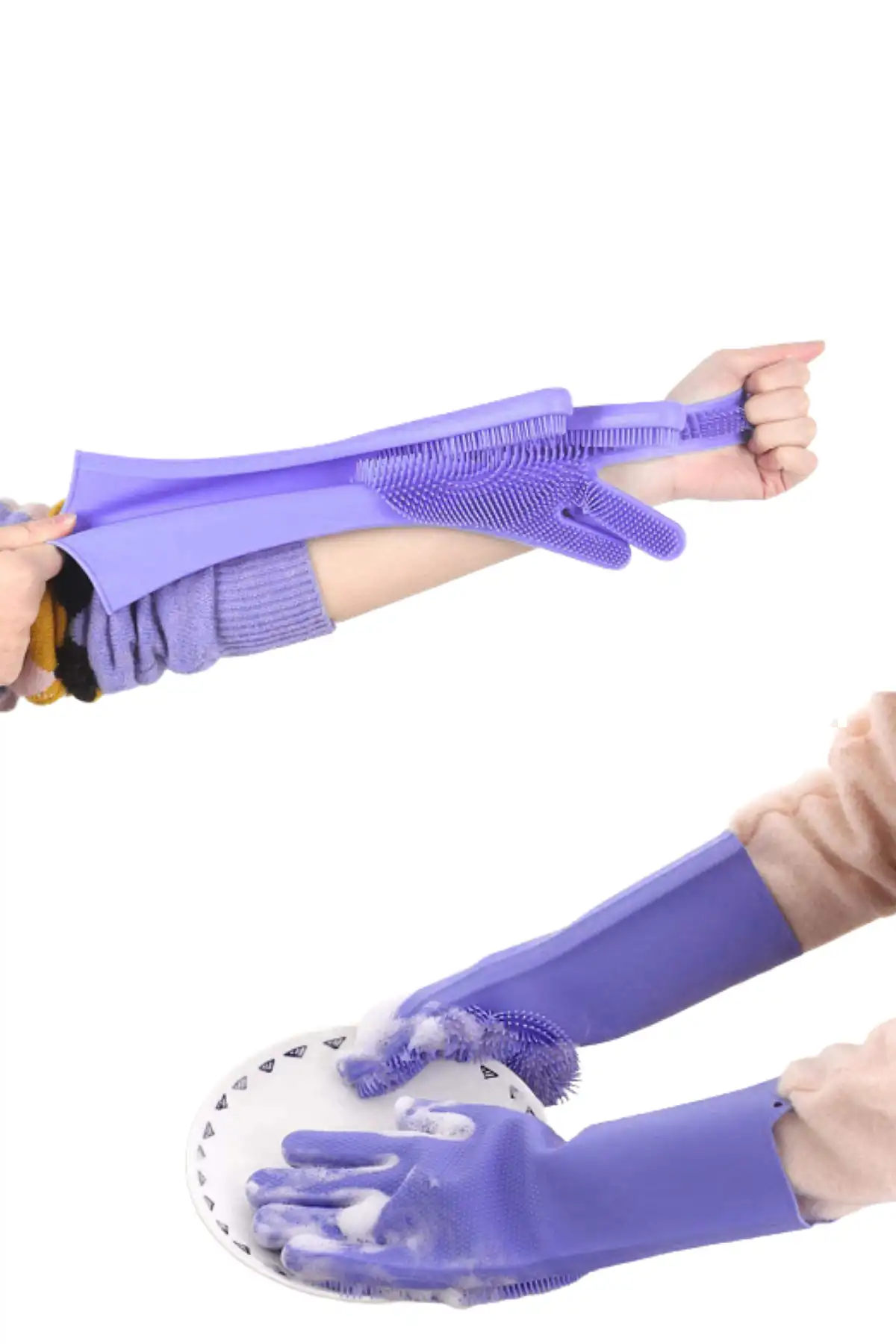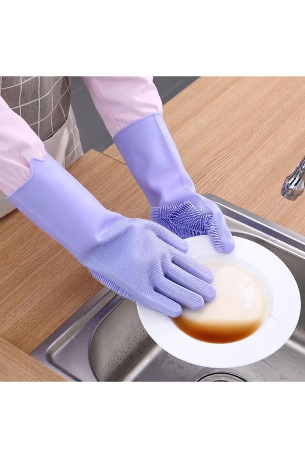 • Tilbe Home Silikon Sihirli Magic Bulaşık Yıkama Eldiveni Dayanıklı Tırtıklı Kaymaz Her El İle Uyumlu Çok Amaçlı Mutfak Banyo Ev Temizlik Eldiveni Eldiveni Tırtıklı Elastik Kaymaz Dayanıklı Araç Yıkama Evcil Hayvan Yıkama Eldiven Seti