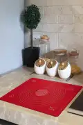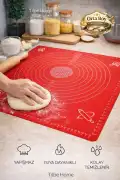 Tilbe Home Doğrulanmış Marka Silikon Hamur Matı Ölçülü Hamur Açma Yoğurma Matı Orta Boy Kırmızı 50 x 40 cm