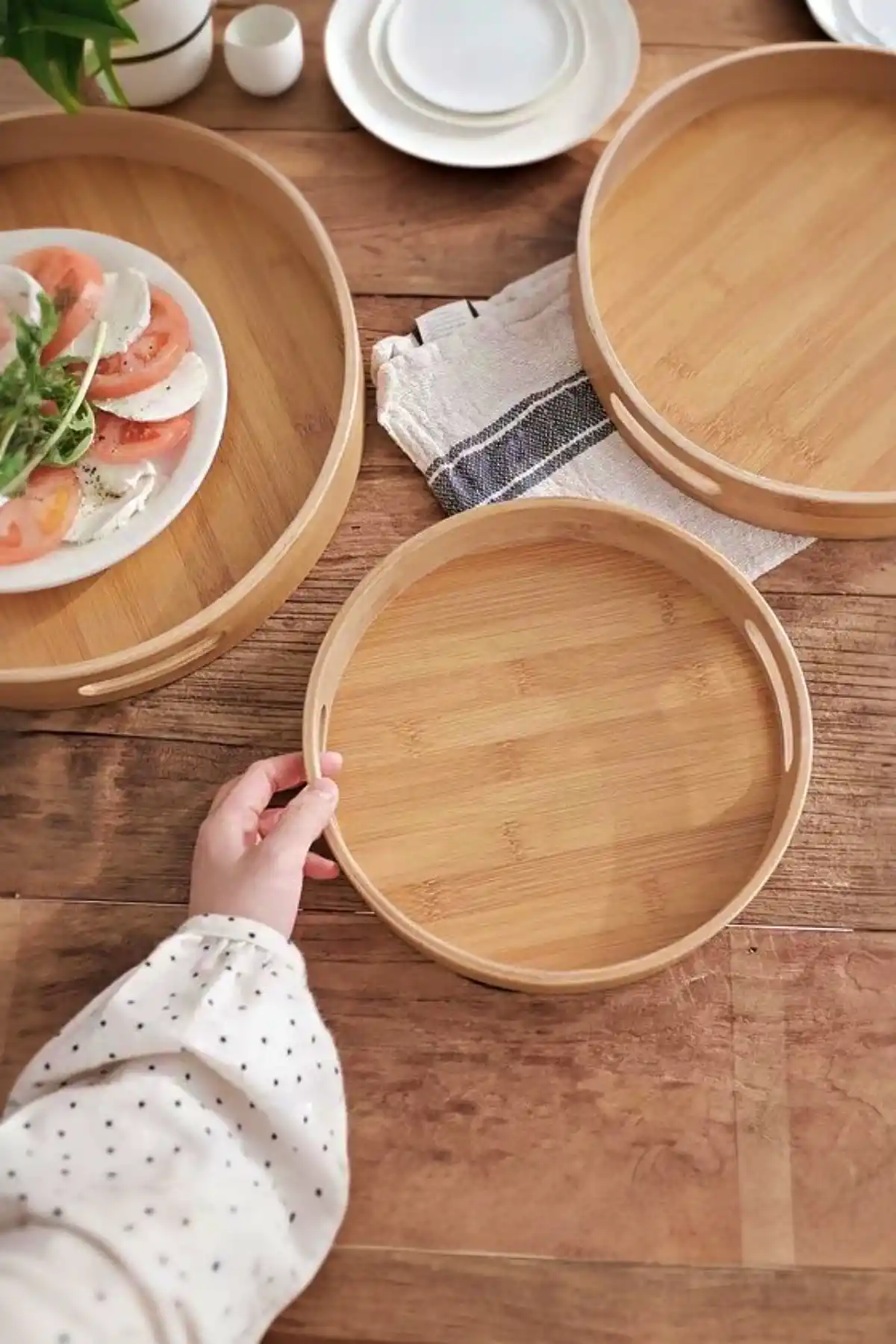 Madamev Doğrulanmış Marka Yuvarlak Bambu Tepsi Büyük Boy Kahvaltı Çay Servis Sunum Tepsisi Kulplu Darke Kitchen Tepsi