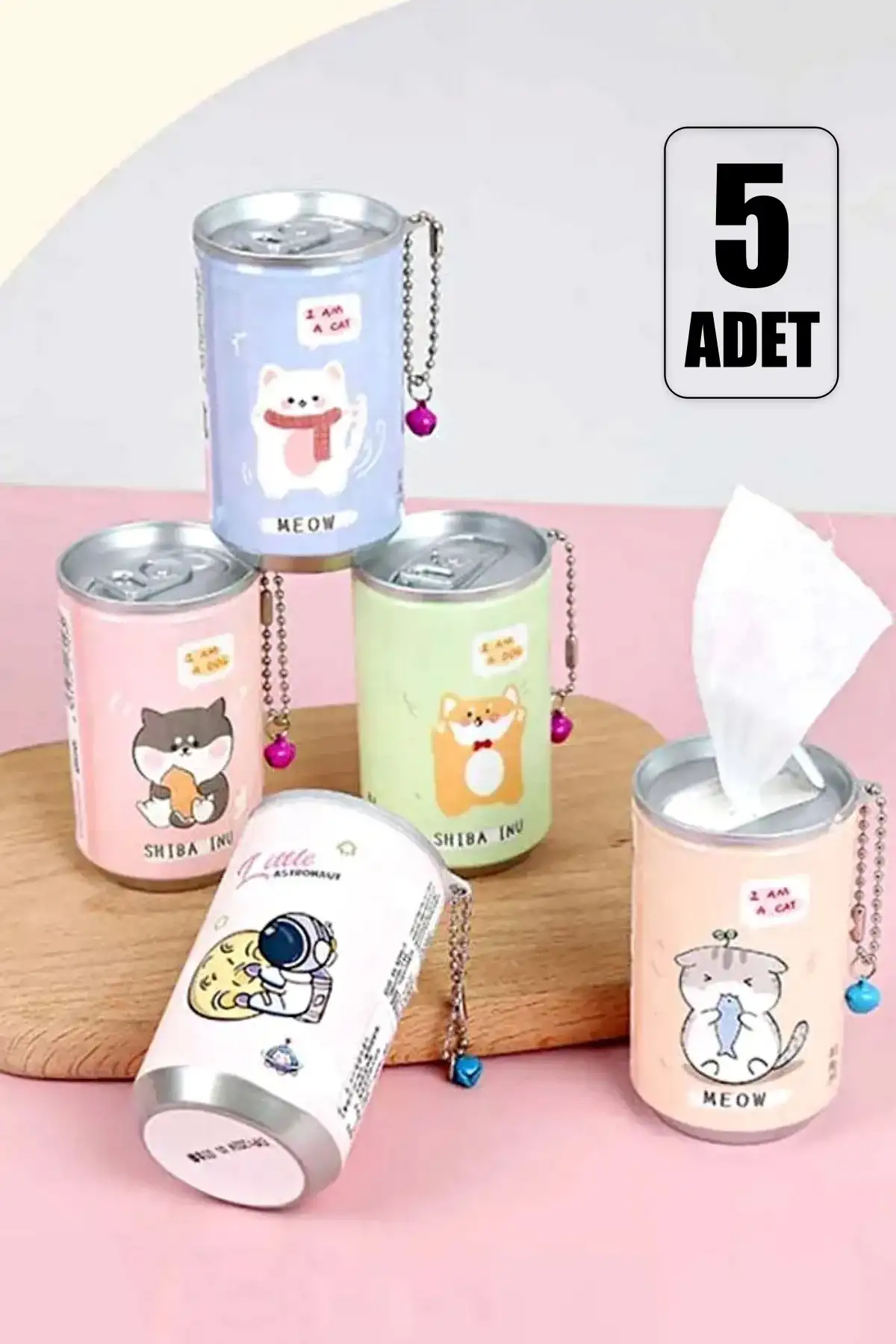 • Tilbe Home 5'li Sevimli Kola Kutusu Şekilli Anahtarlık Islak Mendil Kutusu Çanta Süsü Mini Cep Mendil Seti