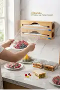 Tilbe Home Doğrulanmış Marka Bambu Streç Kesici 2 Bölmeli Kapaklı Streç Film Folyo Kutusu Mutfak Dolap İçi Organizer Düzenleyici