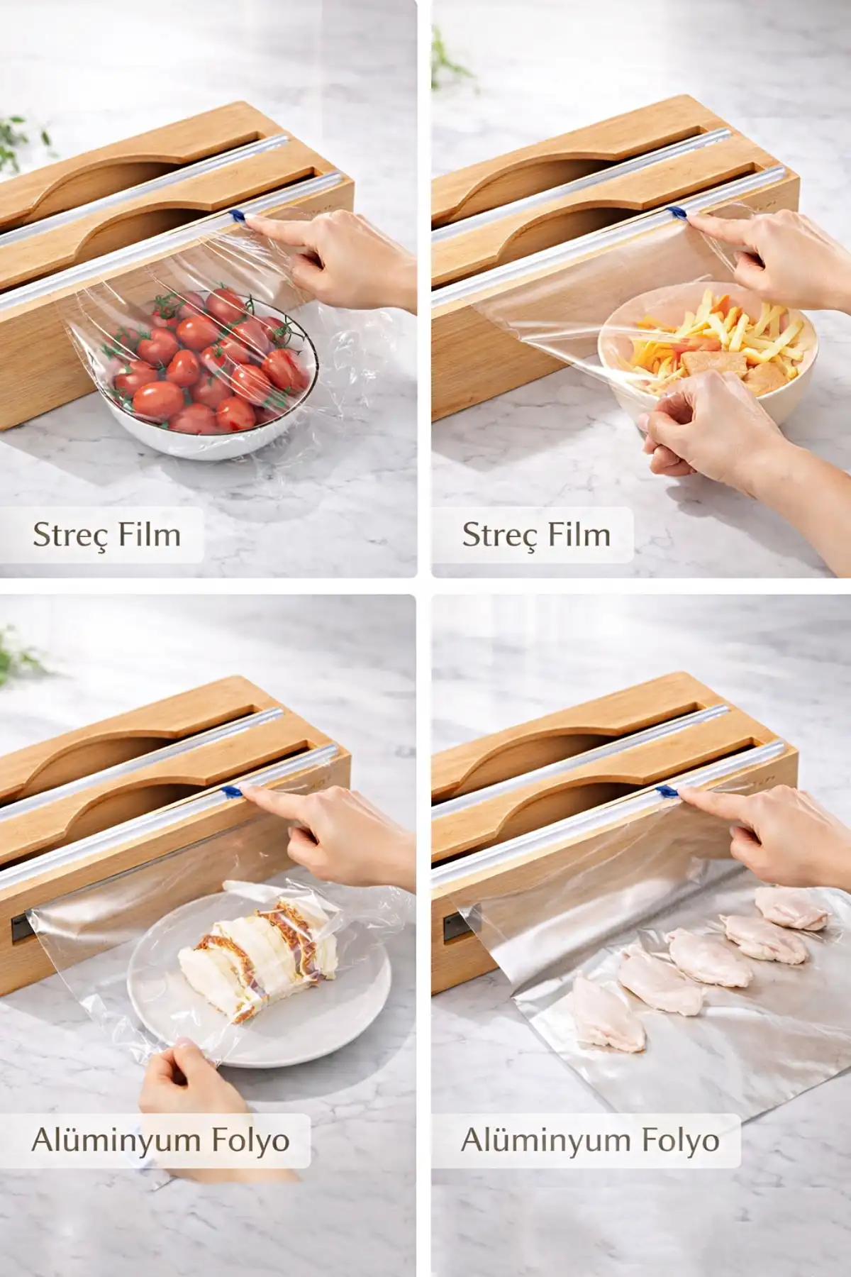 • Streç film ve alüminyum folyo için ayrı kullanım